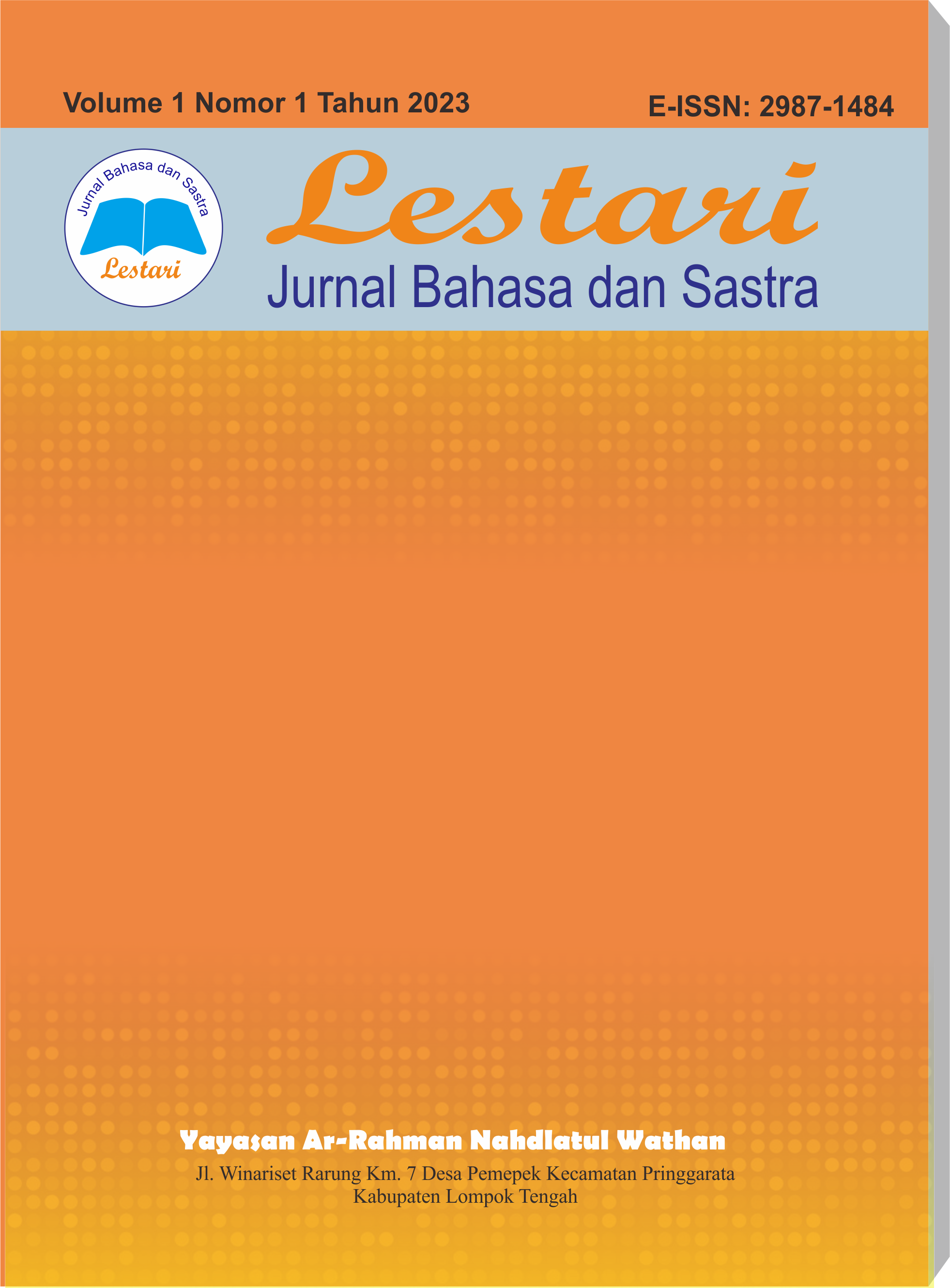 Lestari: Jurnal Sasatra dan Bahasa (e-ISSN: 2987-1484) is a double-blind peer-reviewed journal published by Yayasan Arrahman Nahdlatul Wathan, Indonesia. The editors welcome contributions in scientific articles to be published after undergoing a manuscript selection mechanism, peer-review, and editing proofers.